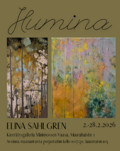Elina Sahlgren on 36-vuotias vaasalainen innostuja, joka maalaa omaksi ilokseen, rakkaudesta väreihin ja erilaisten asioiden kokeilemiseen.